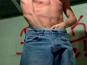 Jacob Taylor & Tommy Regan in Cruising Grounds, Scena 04 - HotHouse, Con i jeans alle caviglie, Jacob Tyler si masturba nel magazzino, in attesa di essere trovato. Tommy Regan si intrufola nella stanza, a torso nudo, con i pettorali gonfi, ansioso di unir